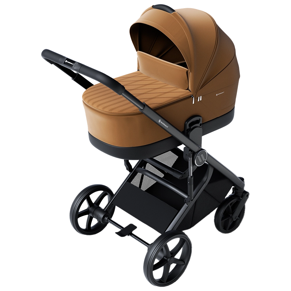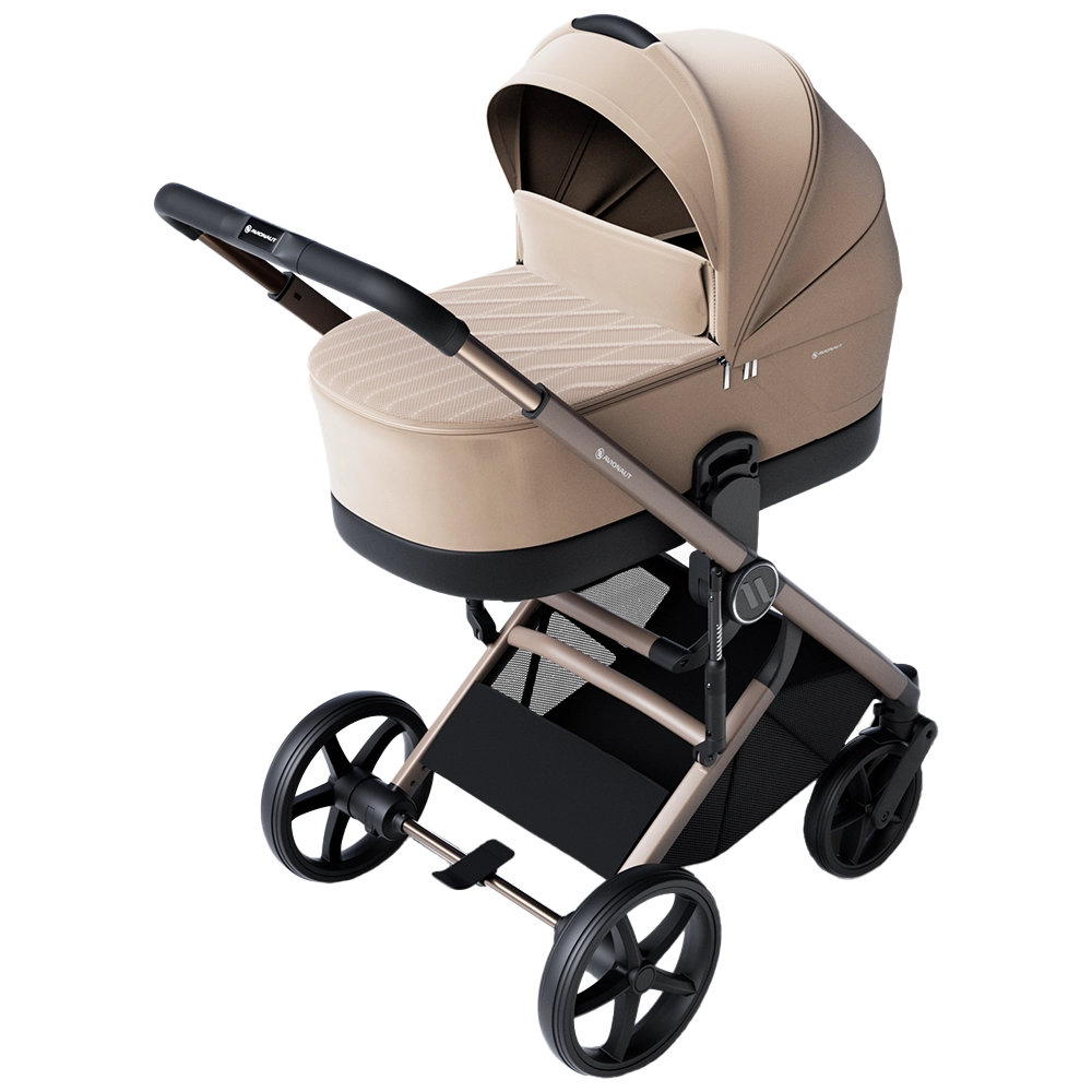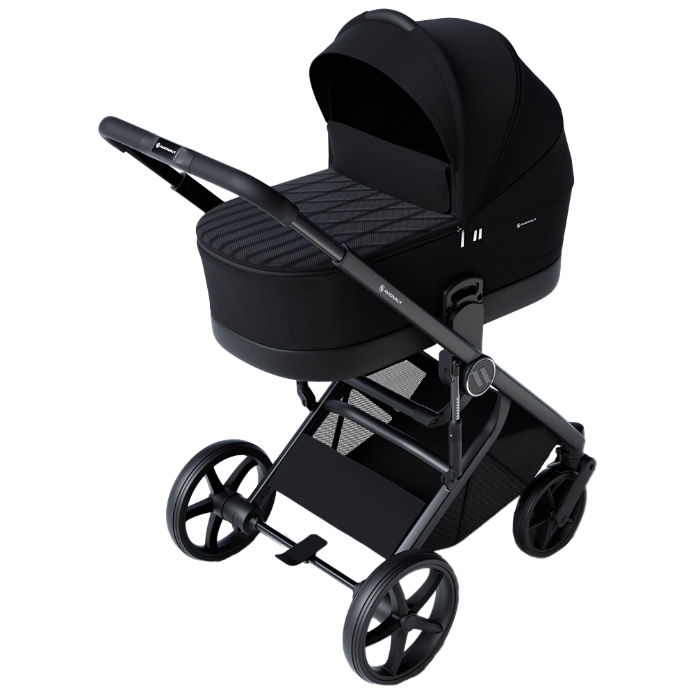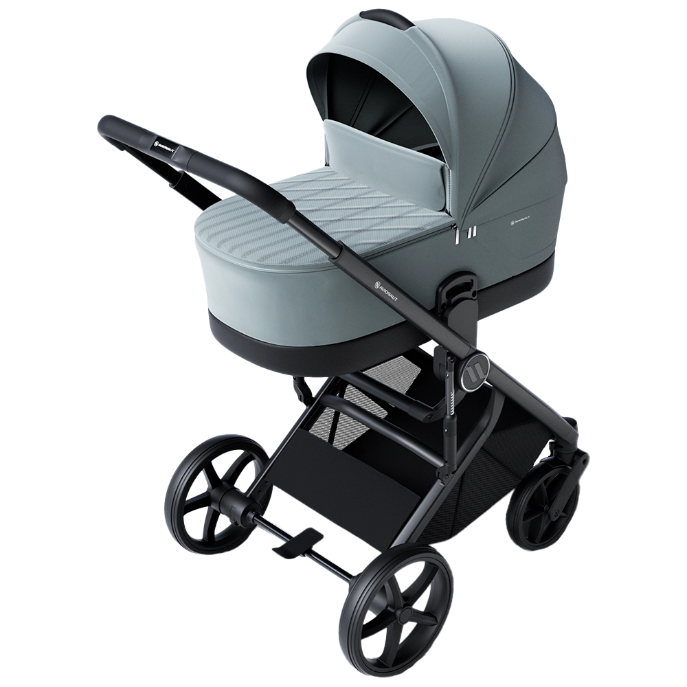 The Avionaut Sirius features a lightweight yet spacious carrycot, providing a safe and cozy space for newborns up to around 6 months. Thoughtfully designed, it includes a zip-out apron with a built-in wind stopper, an extra-large expandable hood with panoramic ventilation, and contoured foam cut-outs for optimal airflow. Inside, a thick mattress made from 94% natural bamboo offers hypoallergenic, antibacterial, and naturally temperature-regulating properties – ensuring year-round comfort for your little one. In addition, the included carrycot height adapters make it easier to lift your baby in and out, providing daily back-saving support for parents.